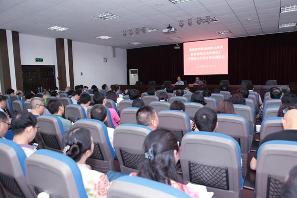 7月21日上午,学校领导班子专题民主生活会情况通报会在二办公楼301会议室召开。省委派驻高校第五督导组副组长蔡玉梅,组员、省教育厅发展规划处副处长贺星辉出席会议。我校全体校领导、副处以上干部和离退休老同志代表参加了会议。通报会由校长唐未兵主持。