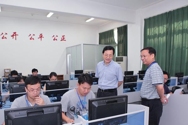 7月21日,湖南省二本投档伊始,校长唐未兵、副校长彭进清来到招生就业处检查指导2014年招生录取工作,并看望慰问招生录取工作人员。