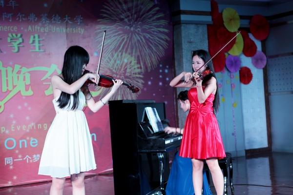5月28日晚,以“one world one dream”为主题的中美大学生联谊晚会在岭南校区大礼堂举行,美国阿尔弗莱德大学学生艺术团与我校大学生联袂演出,带来了一场中西合璧的音乐盛宴。