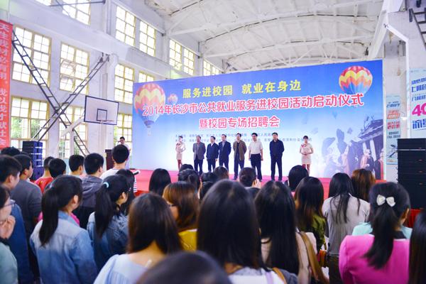 5月14日上午,长沙市公共就业服务进校园活动启动仪式暨我校专场招聘会在校体育健身中心举行。本次招聘会由我校与长沙市人力资源和社会保障局、岳麓区人民政府共同主办,由我校招生就业指导处、长沙市就业服务局、岳麓区人力资源和社会保障局共同承办。