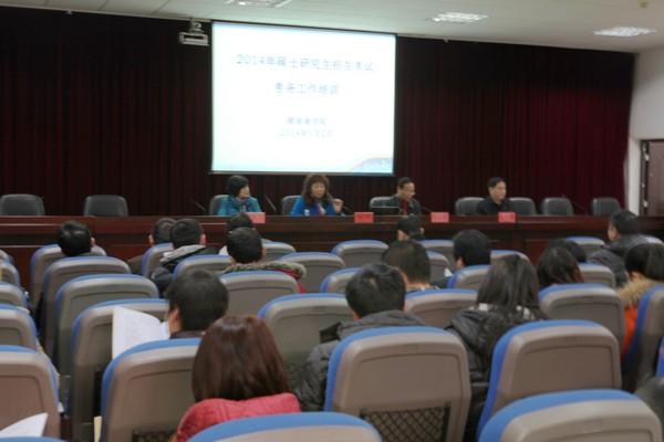 为提高考务工作人员的安全责任意识和考务工作业务素质,确保湖南商学院考点2014年全国硕士研究生招生考试工作顺利进行,促进硕士研究生入学考试工作科学化、规范化、精细化和程序化,学校于1月2日下午召开了硕士研究生入学考试考务工作培训会议。