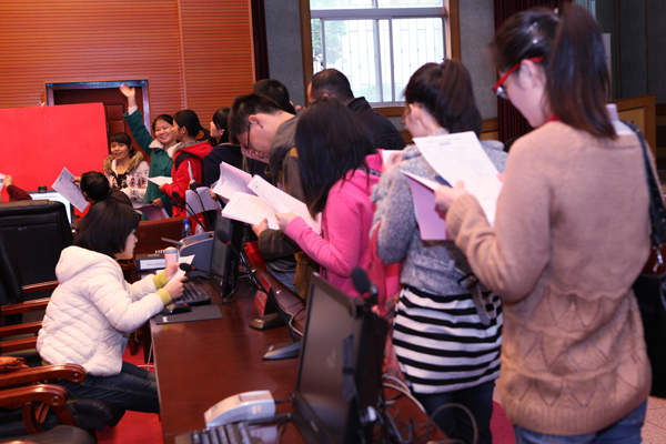 11月10日至14日,湖南商学院报考点2014年硕士学位研究生招生报名进行现场确认。11日下午,校长唐未兵、副校长王明高来到图书馆多功能报告厅,检查我校硕士学位研究生招生报名现场确认工作。