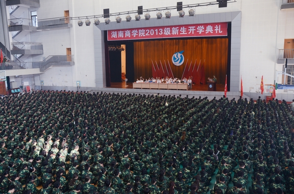9月9日上午,湖南商学院2013级本科生开学典礼在校体育馆隆重举行。校领导欧阳峣、唐未兵、彭进清、杨虹、陈丽影、王明高、曾伏秋、聂国卿、刘国权、李泽华、廖明星,校学术委员会主任柳思维教授出席典礼。开学典礼由副校长彭进清主持。