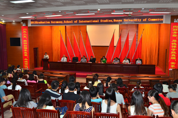 毕业典礼在雄壮的国歌声中拉开帷幕。典礼上,副校长杨虹教授宣读了《湖南商学院关于准予刘恋茹等同学毕业的决定》,学生处沈海祥处长宣读了《湖南省教育厅关于表彰湖南省普通高等学校2013届优秀毕业生的通报》和《湖南商学院关于表彰2013届校级优秀毕业生的通报》。