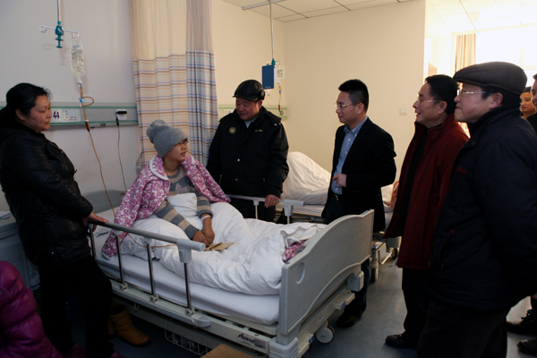 27日,校关工委刘念生、蒋正甫探望了正在湖南省肿瘤医院接受治疗的大一学生张宇微。一同探望的还有中华联合财产保险股份有限公司长沙县支公司的负责人罗元辉。