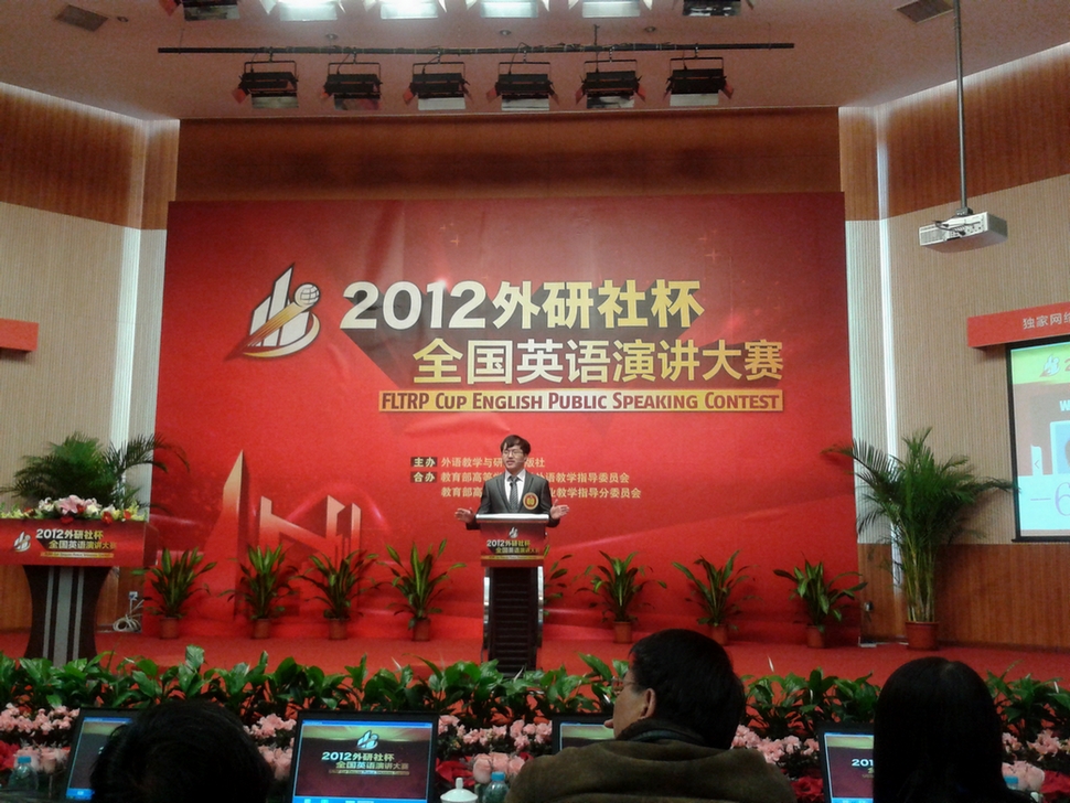 &“外研社杯&”全国英语演讲大赛是外语教学与研究出版社联合教育部高等学校大学外语教学指导委员会和教育部高等学校英语专业教学指导分委员会主办的全国性英语演讲赛事。2012年,全国总决赛共有93名选手和他们的指导教师参加。(范卫平)