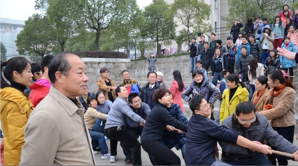 为丰富我校教职工的精神生活,营造学校团结友好气氛,12月4日下午,由校工会和体育教学部联合举办的教职工拔河比赛决赛在体育馆西侧篮球场举行。最后,计信学院力战群雄,获得了本次比赛的第一名。校工会主席廖明星观看了此次比赛。