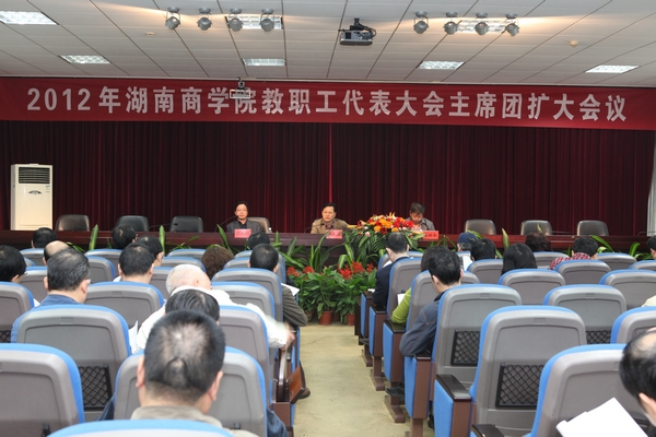 10月14日上午,学校在二办公楼301会议室召开2012年教职工代表大会主席团扩大会议,讨论《湖南商学院首次岗位设置与聘用实施方案(讨论稿)》。