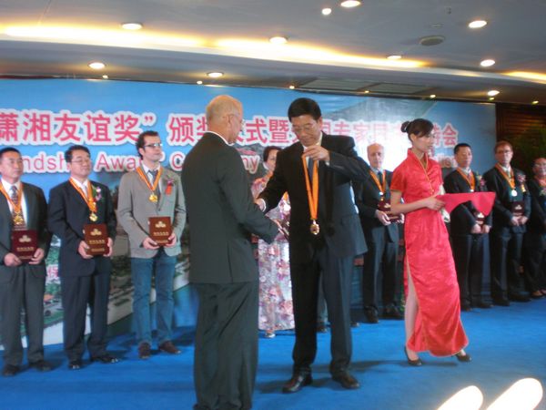 9月25日,在长沙通程国际大酒店会议中心隆重召开湖南省第六届&“潇湘友谊奖&”颁奖大会。湖南省省长徐守盛、常务副省长于来山等省领导出席大会,并为此次获奖的20位专家、教师等颁奖。我校澳大利亚籍教师Peter Robinson获得了&“潇湘友谊奖&”