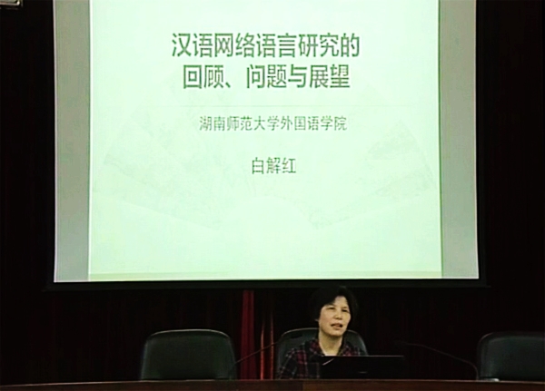 4月24日下午,湖南师范大学正校级督导、博士生导师白解红教授应邀来校作题为&“汉语网络语言研究的回顾、问题与展望&”的讲座。