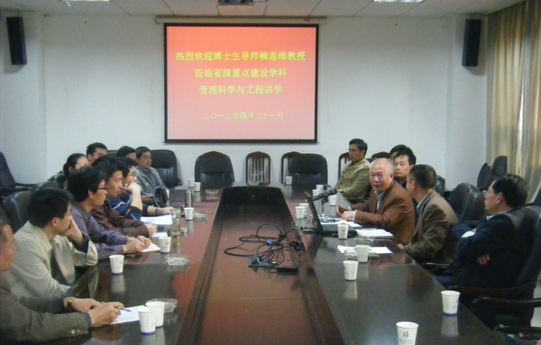 4月21日下午,我校湖南省&“十二五&”重点建设学科之一——管理科学与工程学科在二办公楼401会议室召开了学科建设研讨会.校学术委员会主任柳思维、正校级督导李泽华出席会议,信息学院、计电学院负责人及学科组成员参加了会议。会议由信息学院院长王四春主持。