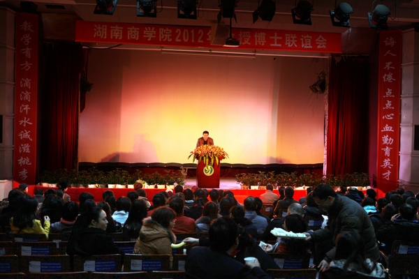 12月27日下午,湖南商学院2012年教授博士联谊会在大礼堂隆重举行。全体校领导、校学术委员会主任柳思维与近200余名教授、博士代表齐聚一堂,共话情谊。