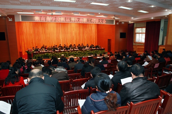 12月18日,我校四届五次教职工代表大会在图书馆多功能报告厅隆重召开,校领导欧阳峣、唐未兵、夏继春、李泽华、彭进清、杨虹、王明高、曾伏秋、陈丽影、廖明星、刘国权出席了代表大会,146名(应到160名)教职工代表参加了此次代表大会。