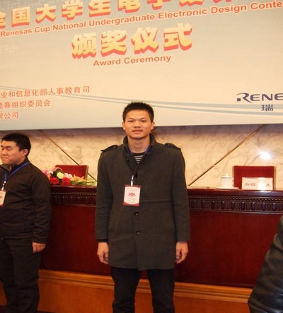 近日,第十届全国大学生电子设计竞赛颁奖大会在北京人民大会堂新闻发布厅隆重举行。中国科学院副院长邬贺铨院士、教育部高等教育司刘桔副司长、教育部高教评估中心李志宏副主任、工业和信息化部人事教育司刘爱民副司长等领导和专家出席了本次颁奖典礼。我校一等奖获得者、计算机与电子工程学院周开军博士和吴海锋同学作为师生代表应邀参加了本次颁奖大会。