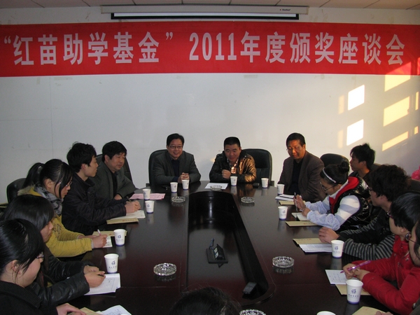 12月13日下午,我校92届市场营销专业校友、湖南土生金贸易有限公司胡红苗董事长回到母校,参加了由他设立的&“红苗助学基金&”2011年度颁奖座谈会。校党委副书记夏继春、副校长曾伏秋出席会议。座谈会由校友总会秘书长刘明辉主持。