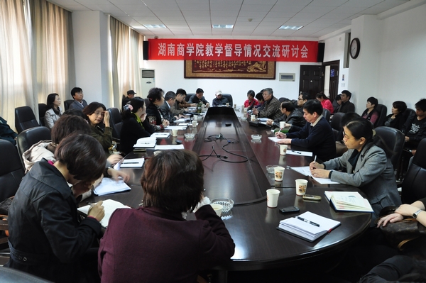 11月28日下午,湖南商学院教学督导情况交流研讨会在二办公楼401会议室举行。会议由教学督导委员会主任杨虹副校长主持,校教学督导、各二级学院教学副院长、评建办和教务处科级以上干部参加会议。