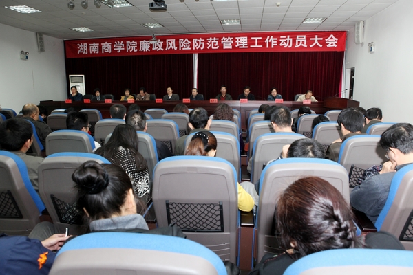 10月27日下午,湖南商学院廉政风险防范管理工作动员大会在二办公楼301会议室举行。校领导欧阳峣、唐未兵、夏继春、李泽华、彭进清、杨虹、曾伏秋、陈丽影、廖明星、刘国权出席会议。省纪委副秘书长、省预防腐败局副局长胡海鹰在会上作专题辅导报告。会议由校党委副书记夏继春主持。