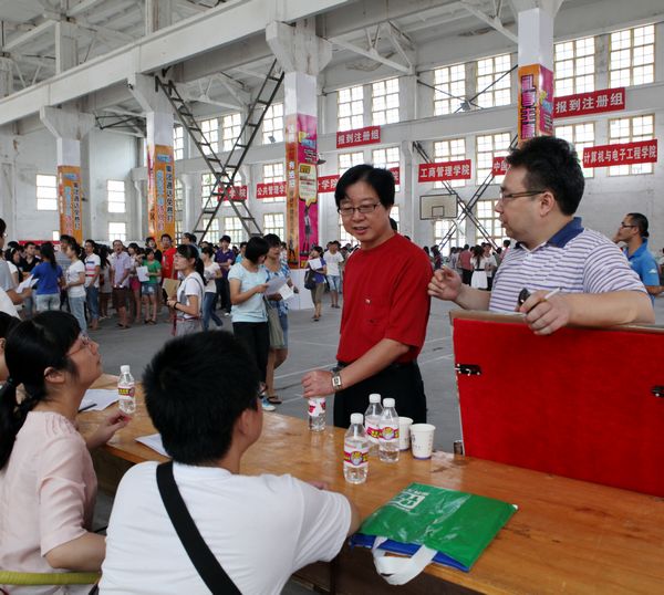 8月28日是本学期校本部在籍学生进行报到注册的时间,在党政办、学工处、教务处、财务处、保卫处、后勤服务总公司等部门的精心组织和各学院的积极配合下,报道注册工作在我校健身中心集中开展。副校长李泽华、杨虹、曾伏秋现场检查了在籍学生报到注册工作。