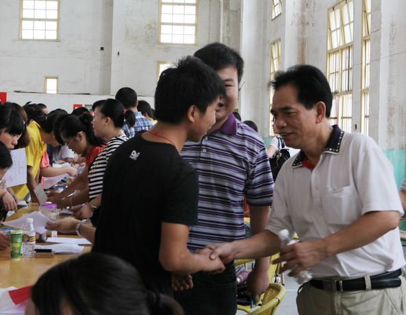 上午虽是学生报到的高峰期,但工作人员前期准备工作细致周到,现场秩序井然,手续办理方便快捷。报到注册工作办公室负责人向校领导介绍了现场的工作情况,校领导与负责信息登记、报到注册的老师及工作人员亲切交谈,询问了二级学院报名的相关情况,并强调了&“四个一&”,即第一节课、第一次晚点名、第一次大扫除、第一次早起床的工作安排。