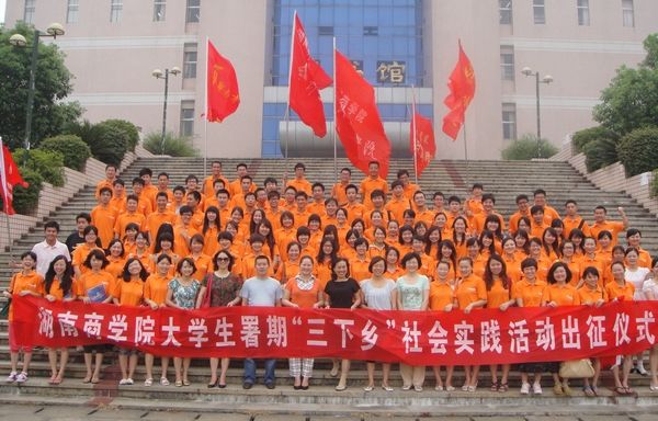 7月11日上午,我校 2011年暑期社会实践安全培训暨&“三下乡&”活动启动仪式在图书馆多功能报告厅隆重举行。教务处处长易松芝、校团委书记黄艳娥、学工处副处长贺幸平、校团委副书记曾晶,及各二级学院党总支副书记、分团委书记、社会实践指导老师、全体&“三下乡&”志愿者学生参加了启动仪式。