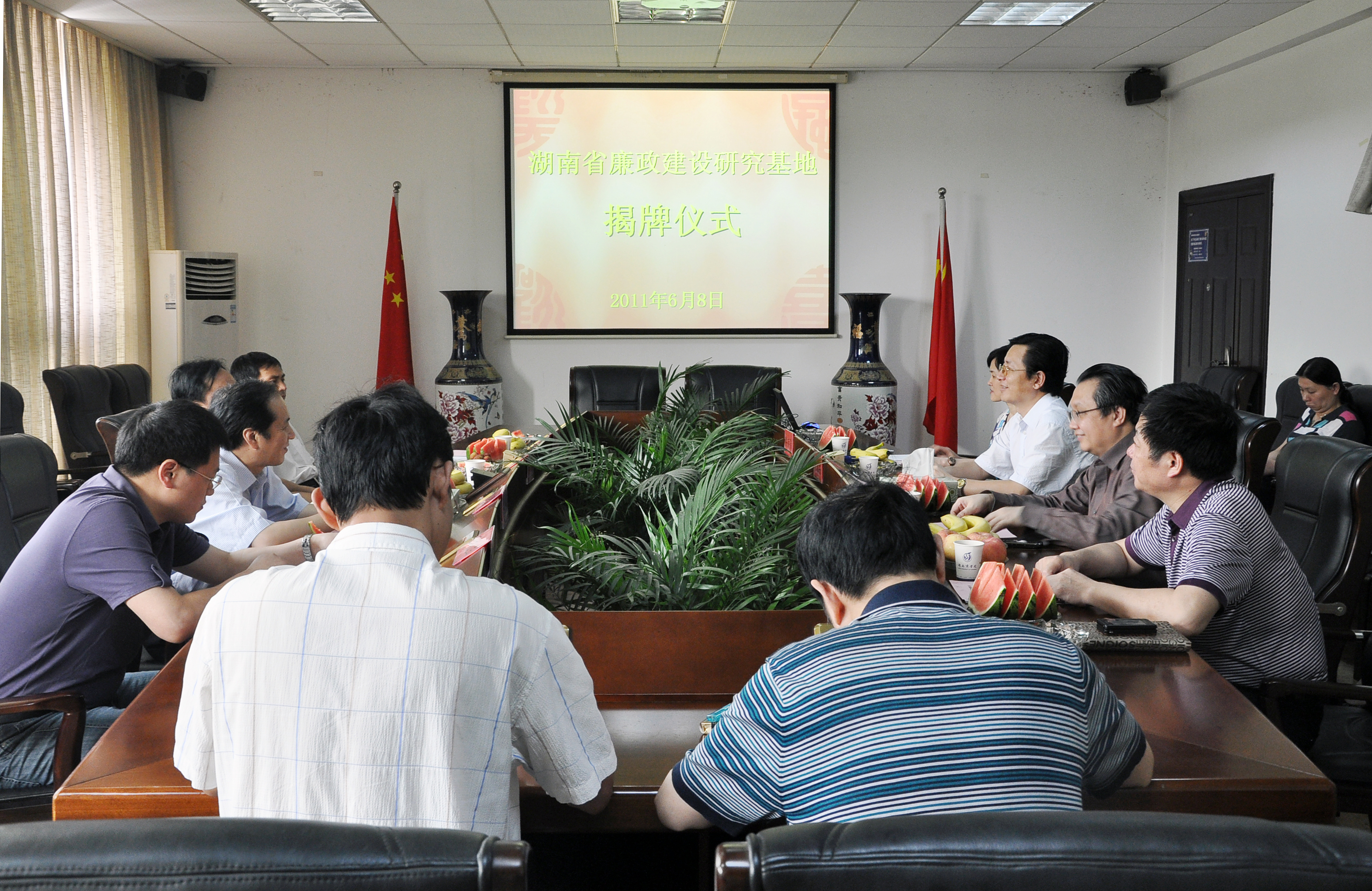 6月8日上午,湖南省廉政建设研究基地揭牌仪式在我校举行。省纪委常委、省监察厅副厅长、省预防腐败局副局长周农,省预防腐败局副局长胡海鹰,省纪委预防腐败室副主任陆群,省社科规划办副主任王礼生,我校领导欧阳峣、唐未兵、王明高、陈丽影等出席了揭牌仪式。会议在二办公楼702举行,由校党委书记欧阳峣主持。