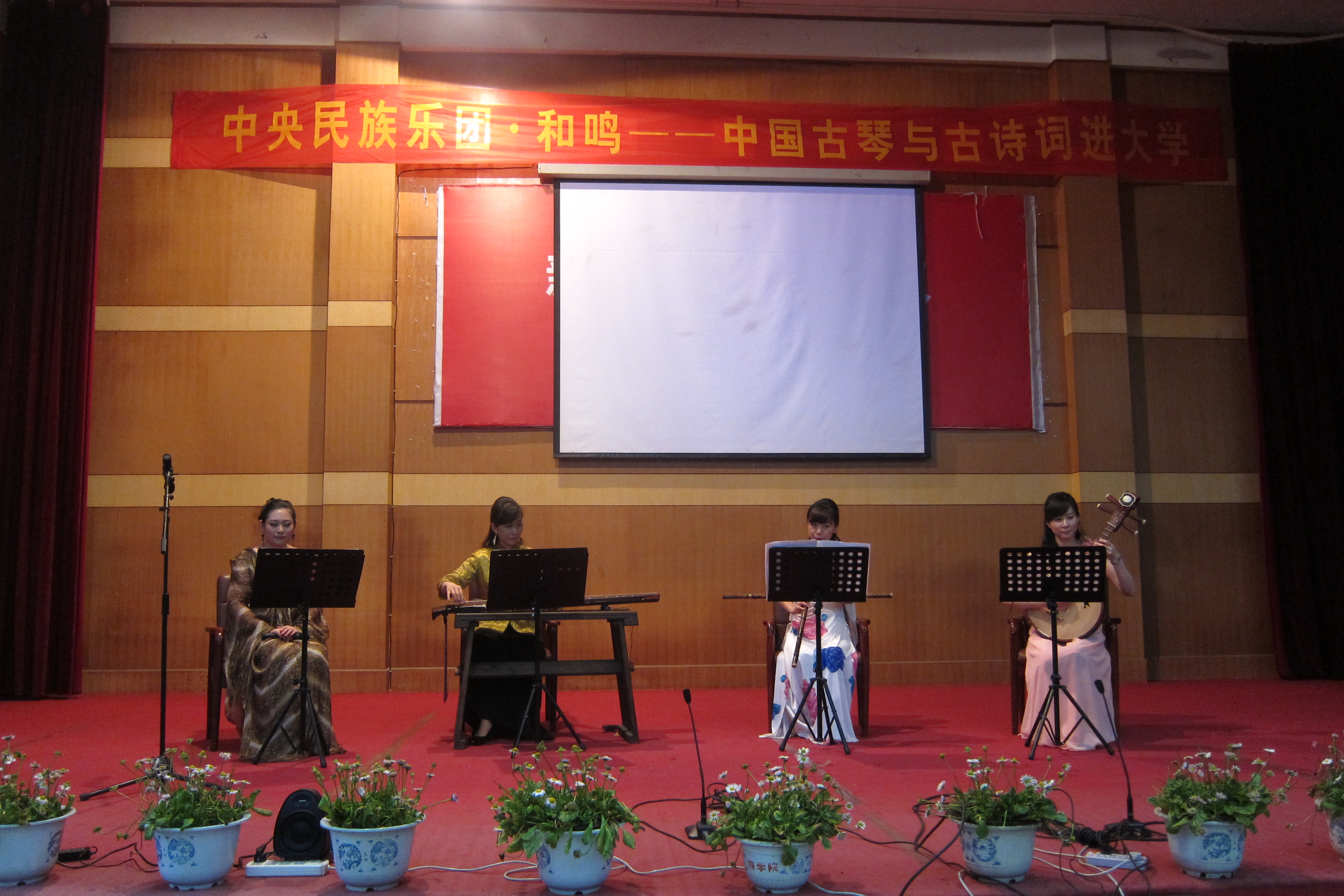 5月12日下午,由我校共青团委员会主办、校团委艺术中心承办的中央民族乐团集讲座与演出于一体的专场音乐会在图书馆多功能报告厅精彩上演,中央民族乐团副团长张振涛作为主讲嘉宾出席音乐会。