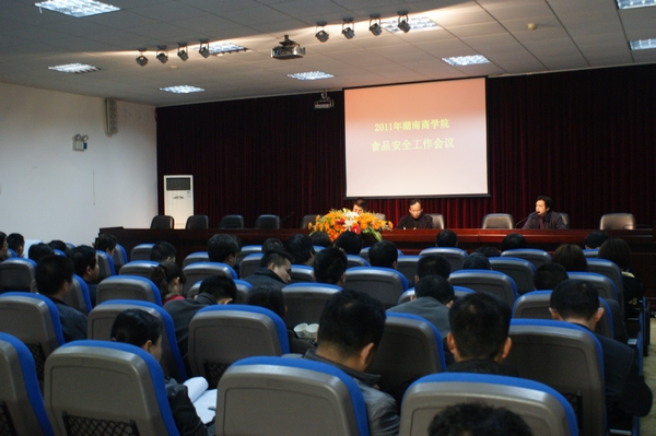 4月8日下午,我校在二办公楼301会议室召开了2011年食品安全工作会议。副校长彭进清出席会议并作讲话,会议由后勤基建处处长熊卫平主持,后勤服务总公司负责人及相关食品安全责任人、各饮食公司负责人参加会议。
