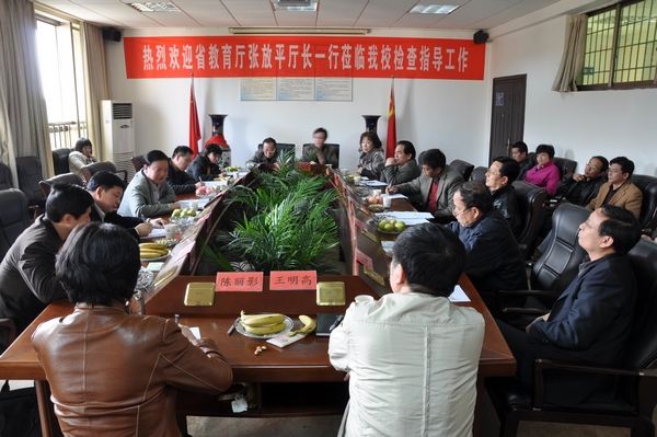 3月28日下午,省委教育工委书记、省教育厅厅长张放平一行莅临我校,就学科建设、教学科研、师资队伍、校区建设等方面进行调研指导。省教育厅财务建设处处长侯荣建、高教处处长唐利斌、科技处处长左清、办公室副处级调研员崔书芳陪同调研。全体在家校领导及人事处、教务处、宣传部、学生处、学位办、科研处、财务处、后勤基建处负责人参加了汇报会。