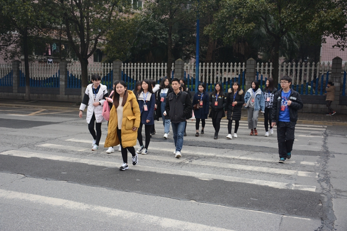 下车时是13:27,汽车西站离特教学校还有一段路程需要步行。会长一边向志愿者介绍着孩子们的基本情况一边提醒大家过马路注意安全。其中几个主要负责的干事说起熟悉的孩子更是滔滔不绝,笑意不断。谈及与孩子之间的故事,会员部干事周雨潇和彭成则是不约而同地提到了孩子们的家长会给他们带吃的,家长的认同是对他们最大的鼓励。