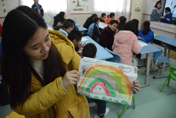 这是一个孩子送给志愿者的画。“大二一年我一直忙于学习,有时候想去都没有抽出时间,很开心他们还记得我。虽然只是一幅简单的画,但是对他们来说已经很不易,我会好好珍藏。这里的每一个人,无论是孩子还是志愿者,都有一颗真挚善良的心。”