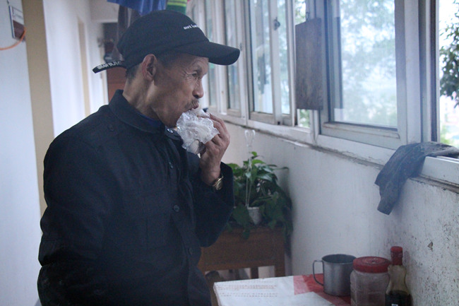 9点,付超云在食堂买了2个烧麦,狼吞虎咽地啃了起来。保洁主管说,任务重时,他常常顾不上吃早餐。“北门和三教是学校的门面,必须时刻保持整洁。就像别人来你家,如果进门就有垃圾,很不好。”他微微有些严肃地说。