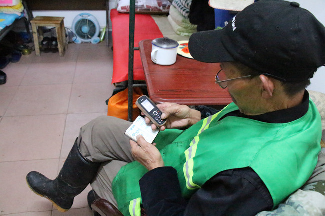 20点,吃完自己做的晚饭后,他拿出手机给家里打电话。因为记不住号码,每次打电话他都要拿出电话本。除了94岁的老母亲,家中最让他惦记的就是孙子孙女,“他们很听话,每次考试都是前几名,家里的墙上都贴满了奖状。”他淳朴憨厚的脸上流露出舒心的笑意。