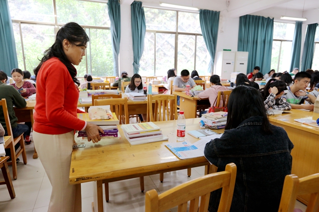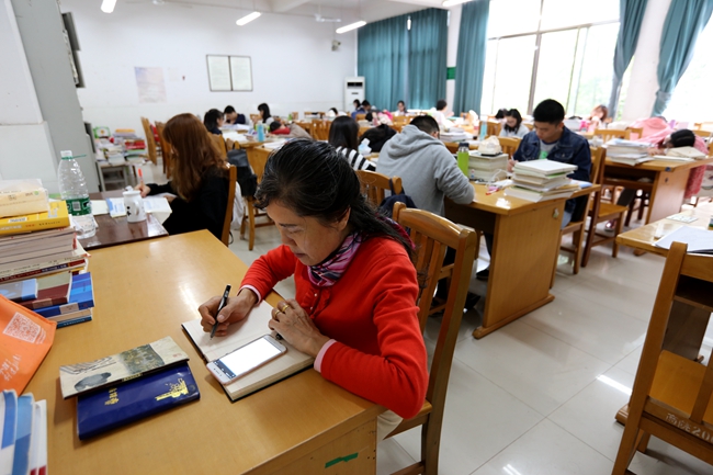 9:30,临近第二节课下课,正是占座的高峰。石君把一、二、四楼3个自习室一个个巡视,记录下空位的大概情况,一轮下来大约半个小时。10点10,她再度返回各自习室察看。年近花甲的她每天这样上下楼不下15次。